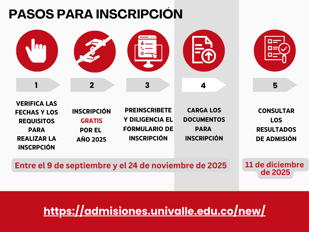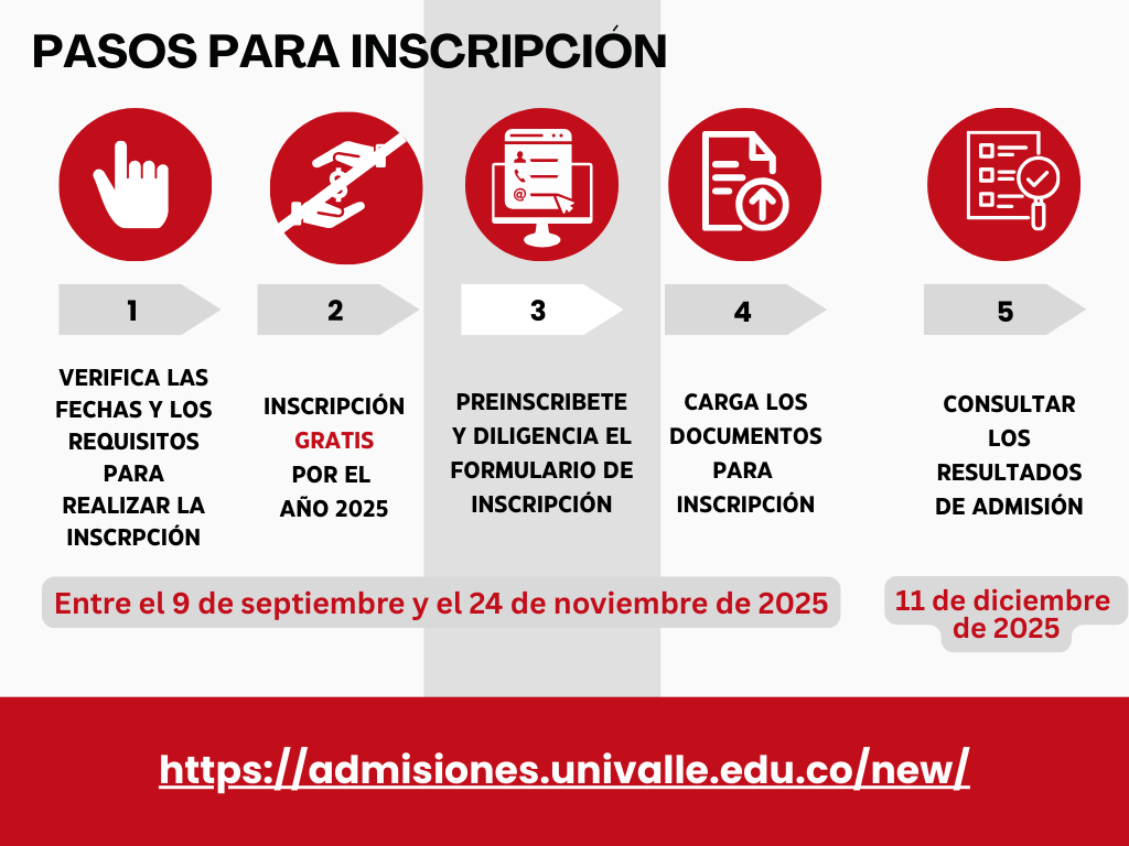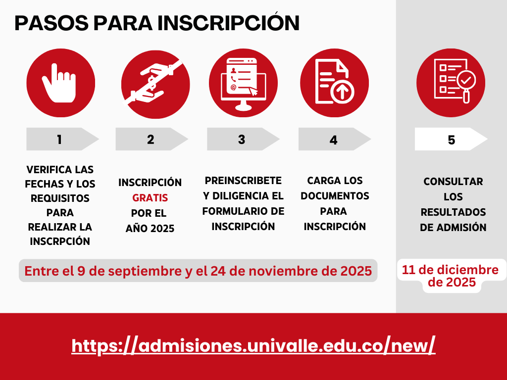 Consulte los resultados de admisión el 11 de diciembre de 2025 en la página del ÁREA DE ADMISIONES de la Universidad del Valle.