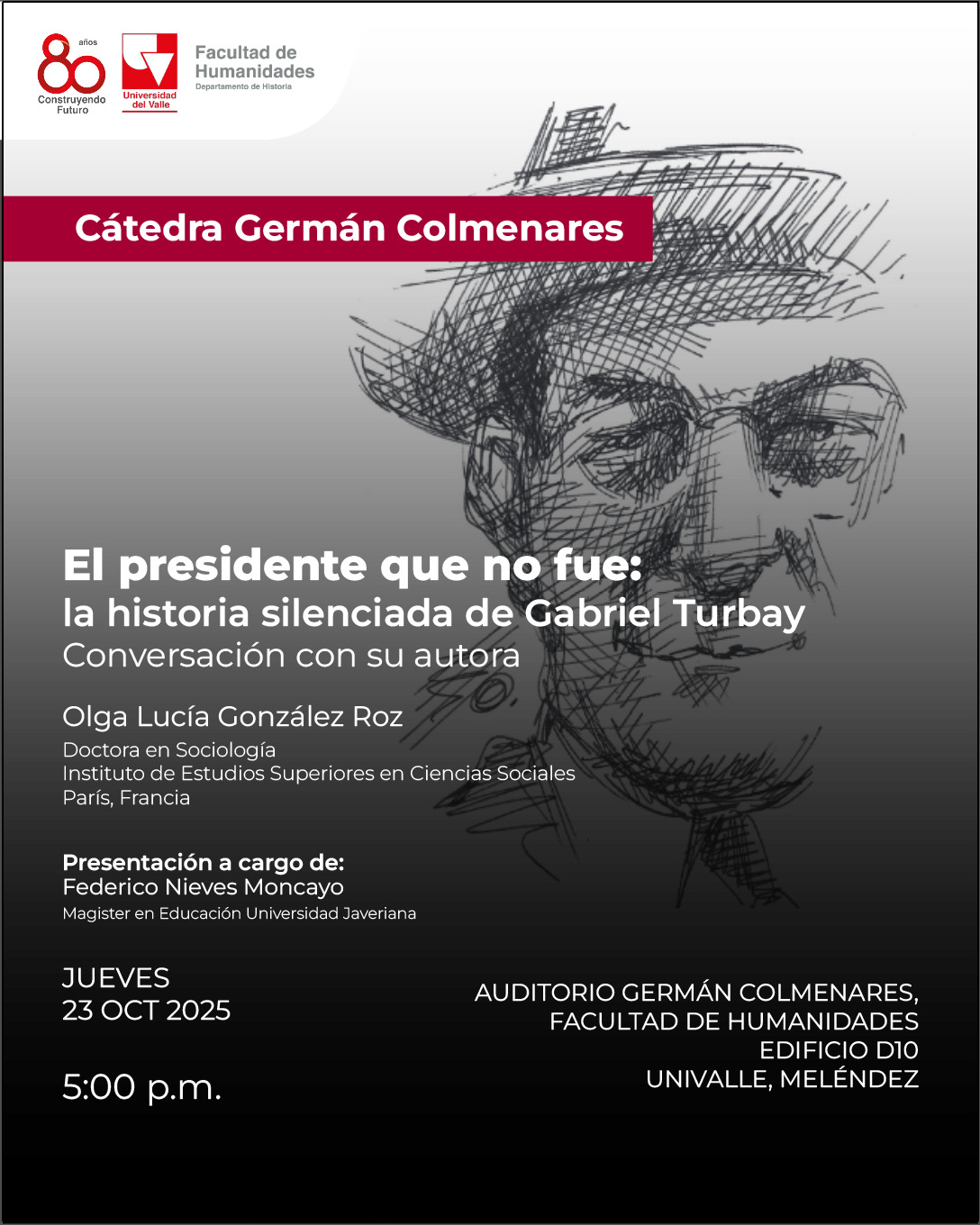 El Departamento de Historia de la Universidad del Valle invita a la Cátedra Germán Colmenares "El presidente que no fue. La historia silenciada de Gabriel Turbay. Conversación con su autora" con la profesora Olga Lucía González Roa, investigadora asociada de la Universidad Paris Diderot.