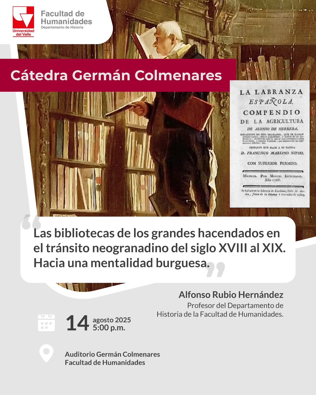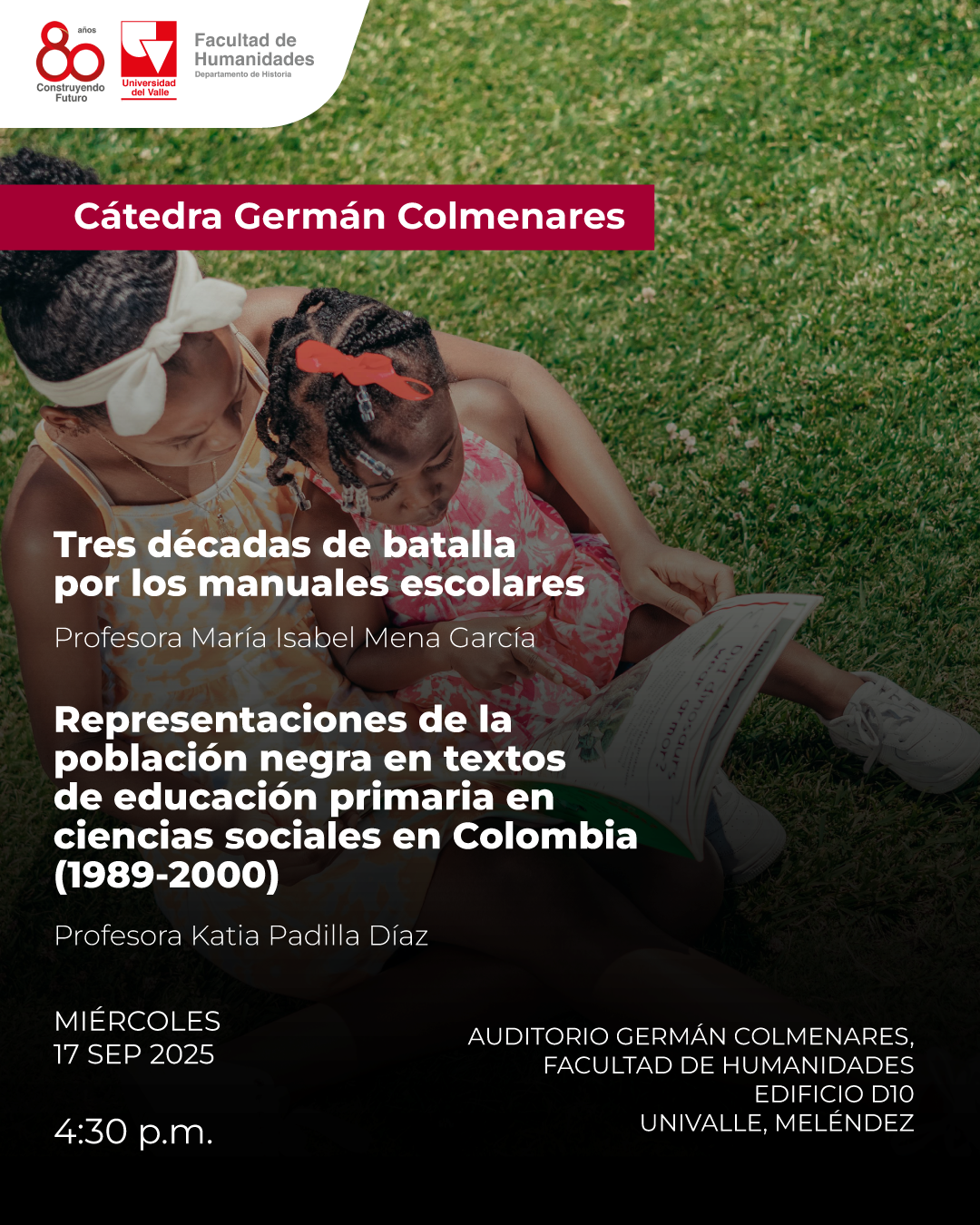 Te invitamos a consultar la grabación de algunas de las sesiones de la Cátedra Germán Colmenares y otros eventos, suscríbete al canal de YouTube del Departamento de Historia de la Universidad del Valle: @departamento.historia.univalle