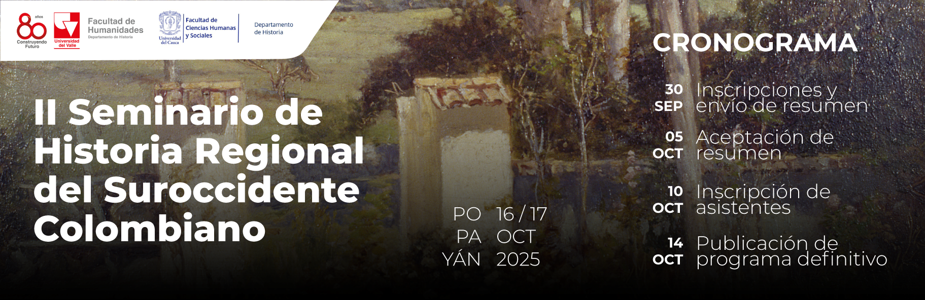 Este seminario constituye la segunda versión de un evento organizado en convenio por la Maestría en Historia de la Universidad del Valle y el programa de Historia de la Universidad del Cauca. Su objetivo principal es crear un espacio de diálogo para investigadores, profesores, estudiantes y el público interesado, en torno a los avances historiográficos recientes en temáticas consideradas tradicionales. Estas líneas de investigación se han revitalizado gracias al reconocimiento de nuevos actores sociales y al análisis de los cambios que impulsaron en los ámbitos económico, de derechos y en la formación de identidades, desde los periodos colonial y republicano hasta la actualidad.